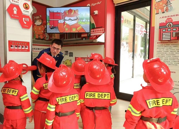 為精準吸引小朋友和年輕人關注身邊的消防安全,徐匯消防聯手西式休閑餐飲品牌必勝客積極創新,融合卡通、消防等元素,將火警報警知識、常見的消防標志、逃生自救要點、VR互動體驗區等各類科普元素,融合到餐廳場景中,讓孩子們輕輕松松、動手實踐學到消防安全知識。