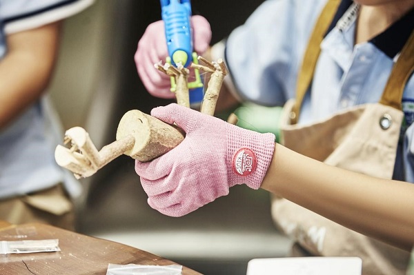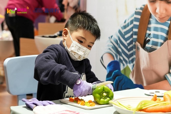 在廣受關注的烹飪實踐中,受以往經驗和傳統觀念的影響,常有家長表示不愿意真正放手讓孩子“動刀”,“怕受傷”、“怕麻煩”是家長主要的反饋。尤其是低學齡的孩子難以操作刀具,鋒利的刀口一不小心就會落到手指上。為此,嘉得利研發了針對于解決孩子防切手問題的功能手套,使用“黑科技”防割面料,能提供各種切割等級的防護。在嘉得利開設的研學課堂可以看到,一群5、6歲小朋友戴上糖果色的防切割手套,聚精會神地把蘿卜和青椒切成塊狀,儼然一副“烹飪小達人”模樣。
