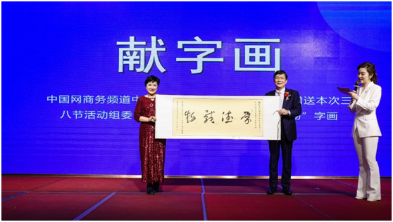 中國網商務頻道中外商會欄目主編王強,向本次活動負責人、edressit服飾公司董事長孫玉晶,贈送“厚德載物”字畫。王強表示:“媒體要一如既往地關注和支持在滬商會女企業家們的發展,深入宣傳她們,進一步傳播女企業家們的創造力、思想力和創新力,為社會創造更大價值?!?/p>