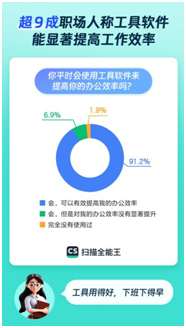 近期,合合信息旗下掃描全能王發布《當代職場人辦公習慣洞察報告》(簡稱,《報告》),對五百余位職場人士進行了辦公工具軟件使用習慣調研。
