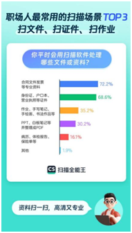 《報告》提到,職場人經常使用掃描軟件來掃描合同文件、發票等專業資料,以及身份證、戶口本、營業執照等證件。