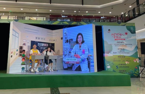 復旦大學附屬眼耳鼻喉科醫院視光學團隊主創的“為EYE瞳心?愛笑的眼睛”近視科普舞臺劇,5月27-28日走進了上海南京西路的梅龍鎮廣場。復旦大學附屬眼耳鼻喉科醫院視光學組副主任姚佩君主任醫師、王惕主任醫師,帶領“近視小飛俠”志愿者團隊,為現場觀眾開展視光學檢查及眼科咨詢服務。