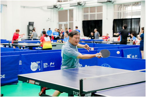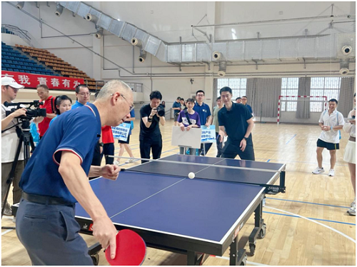 邀請賽的企業代表----上海嘉麟杰紡織科技有限公司楊世濱總裁表示:“希望更多專業運動選手加入到大眾的體育運動賽事來,促進產業共同繁榮?!睋?,這種乒乓球賽事將會繼續舉辦,為行業內人員搭筑交流合作平臺。(活動組織者供圖)