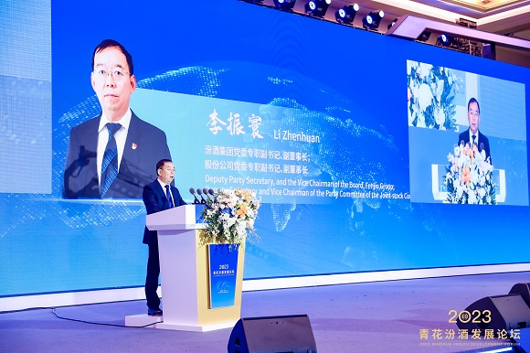 論壇上,中國酒業協會理事長宋書玉,山西省商務廳黨組成員、副廳長李國榮,汾酒集團黨委專職副書記、副董事長李振寰分別致辭。