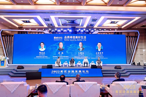 進行圓桌論壇的4位嘉賓,闡述了美酒與美食融合、高品質美酒營造高品質生活等人生哲理,介紹了汾酒首創中國白酒飲用舒適度評價體系的引領優勢。
