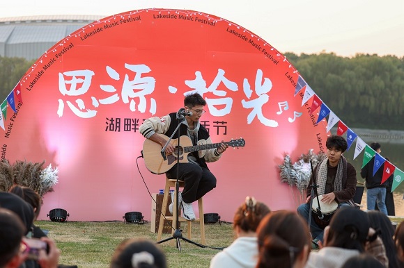為進一步提升學校文化藝術氛圍,倡導“向美而生”的積極生活態度,滿足師生高質量文化生活需要,11月14日下午,上海對外經貿大學舉行“思源·拾光”湖畔音樂生活節。此次校園湖畔音樂生活節包括文化市集、美食文創、互動游戲、藝術體驗、生態文化沙龍和開放式落日音樂會等多個環節。
