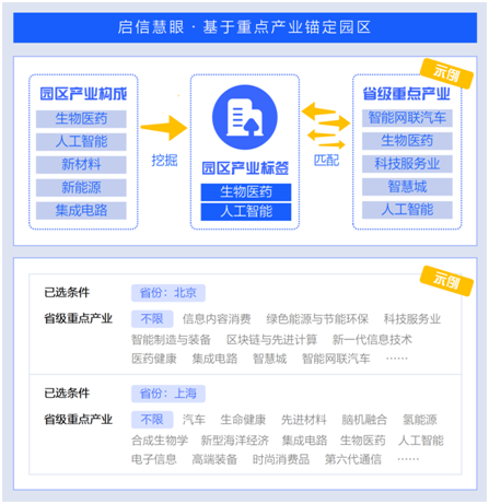 啟信數據基于國內2.3億家企業等組織機構的超過1000億條實時動態商業大數據,現已形成包含超過300條產業鏈、7萬個標準產品、4000萬家公司的數據庫,賦能“園區金融解決方案”,為銀行信貸提供個性化的技術及數據支持。通過相關產品,銀行可全景式查看園區信息,降低企業調研及分析門檻,確定重點企業(龍頭企業),劃分信貸服務優先級,實現批量化獲客,更高效地完成特色產業布局,發揮金融“輸血”作用。