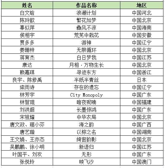 入圍選手名單(排名不分先后,按姓名首字母排序)