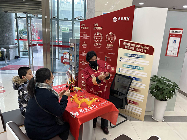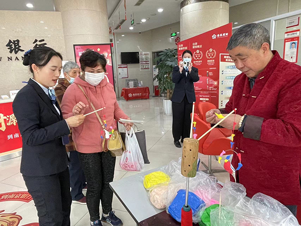 糖畫、中國結、龍鳳字畫……各種非遺手藝人在新春佳節來臨之際,集聚南京銀行上海分行旗下各支行網點,為周邊居民送上新春祝福,開展“廳堂文化節”活動?;顒悠陂g,累計開展75場“廳堂文化節”場活動,吸引客戶近3000名。