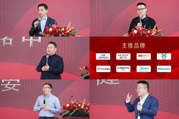 (上左)絲漣中國區總經理費鳴杰、(上右)美的集團中國區域前裝業務總經理梁積連;(中)索菲亞零售中心總經理甘銘中;(下左)海信中國區自有渠道事業部副總經理郭炳安、(下右)惠達國內事業部副總經理沈健