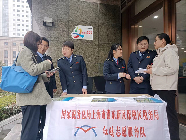 近期,上海市浦東新區外高橋“一鍵通”企業服務中心處,來自浦東新區稅務部門的志愿服務隊連續兩天開設稅費政策咨詢臺,聚焦納稅人繳費人的“身邊稅事”,現場答疑解惑,把服務觸角延伸到群眾和企業“家門口”。