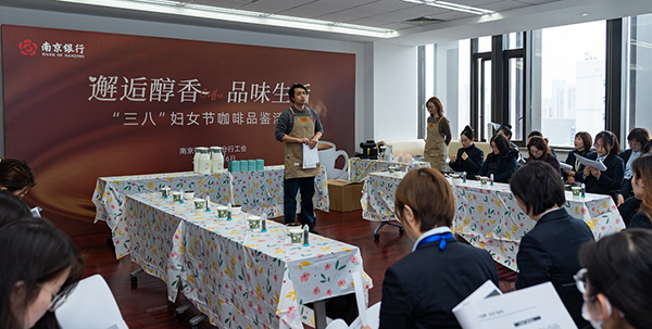3月8日,南京銀行上海分行分行工會舉辦“邂逅醇香、品味生活”“三八”婦女節咖啡品鑒活動。