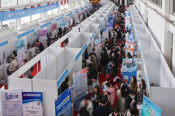 這是上海對外經貿大學2024屆畢業生春季校園招聘會現場,求職學生的現場感受。