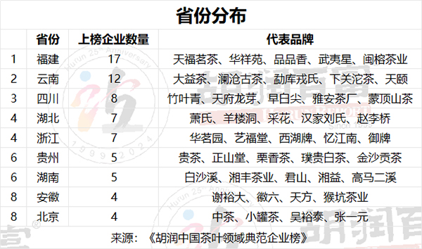“兩個月前,我們發布了‘胡潤中國葡萄酒酒莊50強’榜單,在那張榜單里,只有一個南方酒莊。而在我們的茶業榜里,可以說是南風勁吹,80家上榜企業中有74家位于南方?!?/p>