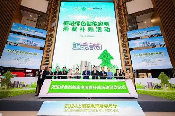 2024年3月30日,2024上海家電以舊換新嘉年華暨促進綠色智能家電消費補貼活動在蘇寧易購五角場店啟動,從2024年3月30日至12月31日,上海將實施新一輪總額為1.5億元的綠色智能家電消費補貼,補貼對象為個人消費者。