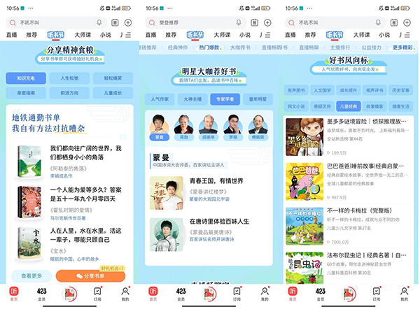423聽書節開啟后,喜馬拉雅與廣西師范大學出版社理想國聯合推出的《中國的歷史》上線僅10天,收聽量提升超過1000%。該書由日本講談社正版授權,嚴謹有序、深入淺出,兼具可讀性與專業性。余華新版本的成名作《十八歲出門遠行》日均收聽量也提升109%,《大醫》《貨幣戰爭》日均收聽量超過80%。史鐵生的《我與地壇》《翦商》《明朝那些事兒》的日均收聽量提升超過60%,《寬恕之城》《太白金星有點煩》《大江大河》全集的日均收聽量提升均超過30%。423期間共有超過50場直播互動,其中有聲書人氣主播沐陽講故事的《神霄之上》新書發布會單場直播獲得喜鉆打賞高達24萬。