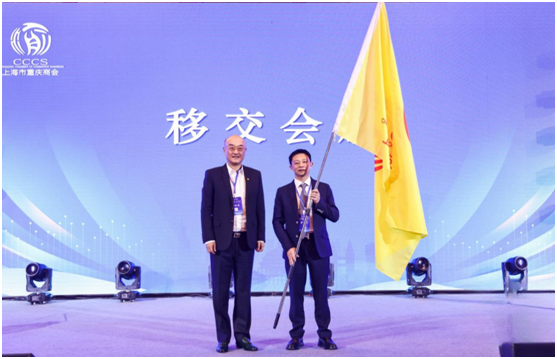 商會第五屆理事會第一次會議選舉上海牧凱企業管理有限公司董事長尹開均,為新任會長;選舉上海大寓商業管理有限公司執行董事周文斗、上海新渝商實業(集團)有限公司董事長葉祥明、上海賽迪投資控股(集團)有限公司董事長付光華、創優建設集團有限公司董事長吳輝林,為常務副會長。會上向商會顧問、醫療專家團成員授牌。吳旭向尹開均,移交會旗。