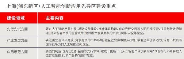 區域布局上,建議以人工智能島為主軸,串聯起科學研究、數字智能、生命健康和科技商務四大科創集群,實現創新、服務、生態和交通的融合,聚焦一島一區一城,打造具有全球影響力、國內領先的人工智能創新源頭、示范先鋒、生態典范、人才高地、世界客廳,成為上海國家人工智能發展高地新標桿。