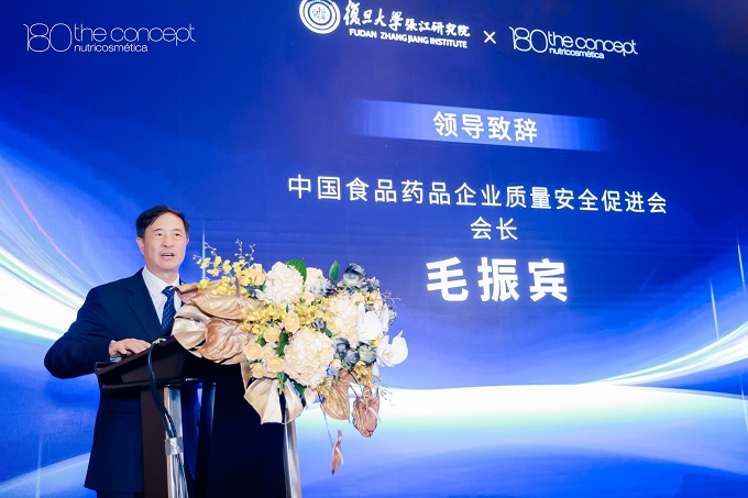 中國食品藥品企業質量安全促進會會長毛振賓和上海浦東復旦大學張江科技研究院常務副院胡建華發表了領導致辭。