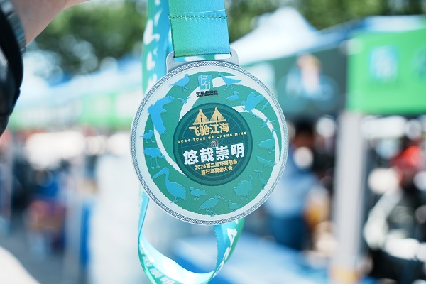 為了讓騎行者們擁有更好的體驗,主辦方提供了人性化的服務。沿途設置了5個打卡和補給站,不僅提供了礦泉水、功能飲料、電解質粉和西瓜等飲品和食品,還融入崇明糕等本土元素。在終點,工作人員列隊歡迎騎手凱旋,給完賽者佩戴榮譽獎牌。組委會攜手中國郵政推出了活動專屬郵戳。