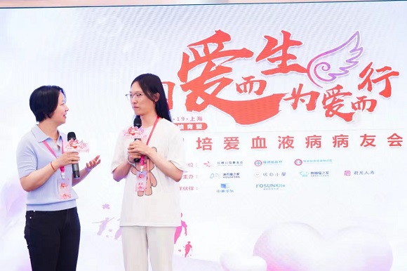 第一個板塊“愛心托舉希望”部分由楊君芳主任和張建平主任主持。聯合主辦方暖白小屋的工作人員鄧瑩作為一名白血病患者家屬,分享了她陪著弟弟(急淋B非血緣移植后3年)將“脫軌的人生”扶正的經過,希望大家不只是醫學上的治愈,更是社會學的治愈。