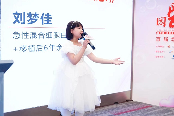 14歲的劉夢佳小朋友(混合細胞白血病移植后6年多)帶來動人歌曲《如愿》,天籟般純凈的嗓音感染了現場所有人,歌聲縈繞間大家不禁濕了眼眶。未來的路還很長,希望病友們帶著這份新生的希望,去創造更加精彩的未來。