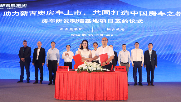 大會上,新吉奧集團與桐鄉政府舉行了房車研發制造基地項目簽約儀式。作為桐鄉市的標桿企業,新吉奧集團與地方政府展開深度合作,共同致力于將桐鄉市打造成世界級的房車產業中心。根據合作協議,新吉奧將充分利用桐鄉市的配套產業優勢和政府的大力支持,構建一個集研發、生產、銷售、服務于一體的房車全產業鏈生態,特別是在當前新能源汽車技術迅猛發展的背景下,將科技理念與房車設計深度融合,推動房車產業的綠色革命。
