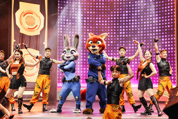 派對的高潮部分,是瘋狂動物城高人氣角色朱迪和尼克的驚喜亮相。兩位高人氣明星一登場,便引發了現場觀眾的熱烈歡呼。他們與舞者帶來的熱情舞蹈、與觀眾們的合影留念,讓全場的氣氛達到了頂峰。朱迪和尼克代表著《瘋狂動物城》豐富的文化內涵和情感價值,他們的驚喜登臺也讓現場觀眾正面感受到上海迪士尼度假區的魅力,進一步加深了消費者對“趣泡”特飲的情感共鳴和價值認同。