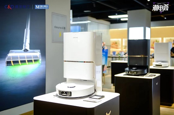 據了解,潮電薈位于該商場高端電器館核心位置,面積750㎡,已引進LAURASTAR、摩飛電器、戴森、凱迪仕、德施曼、咖博士、德龍、科沃斯、追覓、奧佳華、福騰寶、赫茲、斯泰得樂、採光等14個品牌,包含熨燙機、咖啡機、吹風機、掃地機器人、洗地機、智能鎖、電動牙刷等超300個SKU。店內設有烹飪烘焙區、觀影休閑區、咖啡吧、按摩體驗區、直播中心等豐富場景。