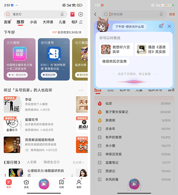 6月,喜馬拉雅為用戶開放提供了語音搜索頁面功能。用戶語音搜索感興趣的內容關鍵詞,可以喚起喜馬拉雅為用戶推薦的相關內容,極大地豐富了音頻用戶的收聽使用體驗。