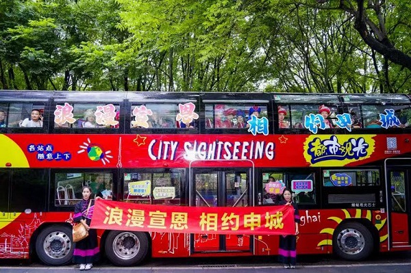 宣恩文旅與春秋觀光巴士,還聯合推出文旅融合快閃活動,宣恩文旅推介官們身著盛裝,在上海地標性景點,為市民游客呈現了苗族“攔門酒”、民族舞蹈等當地特色。(春秋旅游供圖)