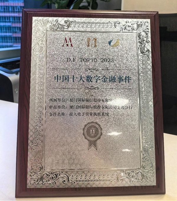 近日,由上??萍冀鹑诓┪镳^、全球并購公會數字經濟專委會與上海市互聯網金融行業協會共同發起并征集的“2023年度中國十大科技金融事件”與“2023年度中國十大數字金融事件”兩張行業重要榜單正式發布。廈門國際銀行上海分行牽頭申報的“接入電子營業執照系統”事件,成功入選“2023年度中國十大數字金融事件”榜單。