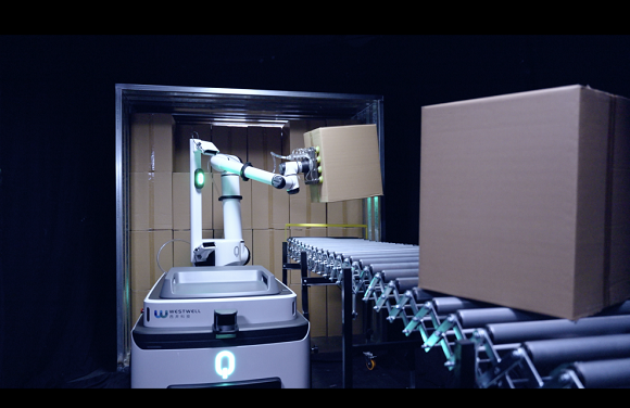通過整合多傳感器感知技術并內嵌AI大模型,Well-Bot能夠實現貨物的精準識別、定位以及自主導航規劃。它不僅無需額外的場地基礎建設投入,還支持人機協作,靈活適配各種月臺環境。它能夠在毫米級的目標定位精度下完成高難度路徑規劃,安全穩定地自主完成集裝箱內貨物的裝卸工作,顯著提升運營效率。