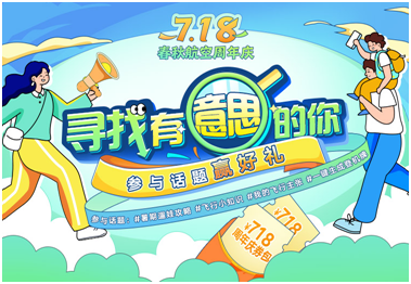 春秋航空的周年慶活動,自7月12日至7月23日,給予旅客一系列豐富多彩的優惠和互動體驗,不僅覆蓋了機票特惠、親子出行、學生專享等多個領域,還創新性地融入了話題互動、AI生圖等趣味玩法,讓旅客在享受實惠的同時,感受春秋航空的品牌魅力。