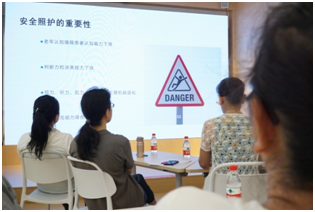整場活動分為理論部分的梳理及情景部分的演練兩個板塊,包含了理論課程(跌倒、誤吸的應急處理)及跌倒的現場處理、海姆立克急救法等內容。與會者中,有祖孫三代一同前來學習家庭安全照護技能,與會者都認真聽講、積極互動,稱贊這種講座的實用性強、操作性強。