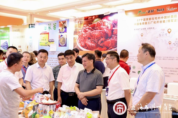 安徽省農業農村廳二級巡視員陳發明以及滁州市區縣領導、中外客商,參觀了滁州優質特色農產品企業展臺。(上海市滁州商會供圖)