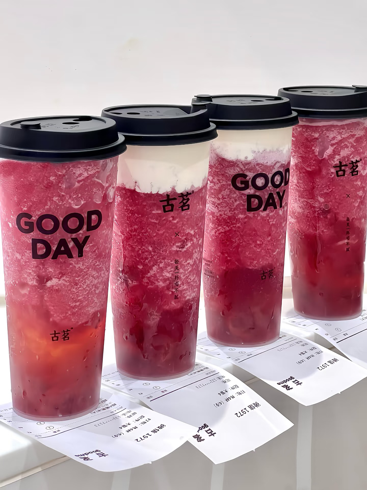 一位日本博主去古茗門店打卡,點了三杯不同口味的果茶,只因比起日本的葡萄價格,一杯古茗的超A芝士葡萄實在太實惠。白色的奶蓋覆蓋在紫紅色的手剝葡萄冰沙上,而且還是嚴選當季夏黑、巨峰鮮果,顏色鮮亮的鮮果茶堪比拍照神器。